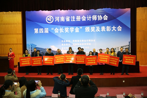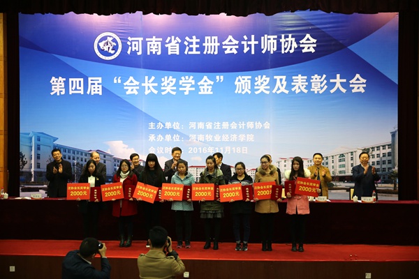 11月18日下午,河南省注册会计师协会第四届“会长奖学金”颁奖表彰大会在我校英才校区隆重举行。河南省财政厅副厅长赵学东,河南牧业经济学院副校长许圣道,以及省注册会计师协会有关领导出席会议,26所获奖学生学校领导和老师共同参加此次会议。