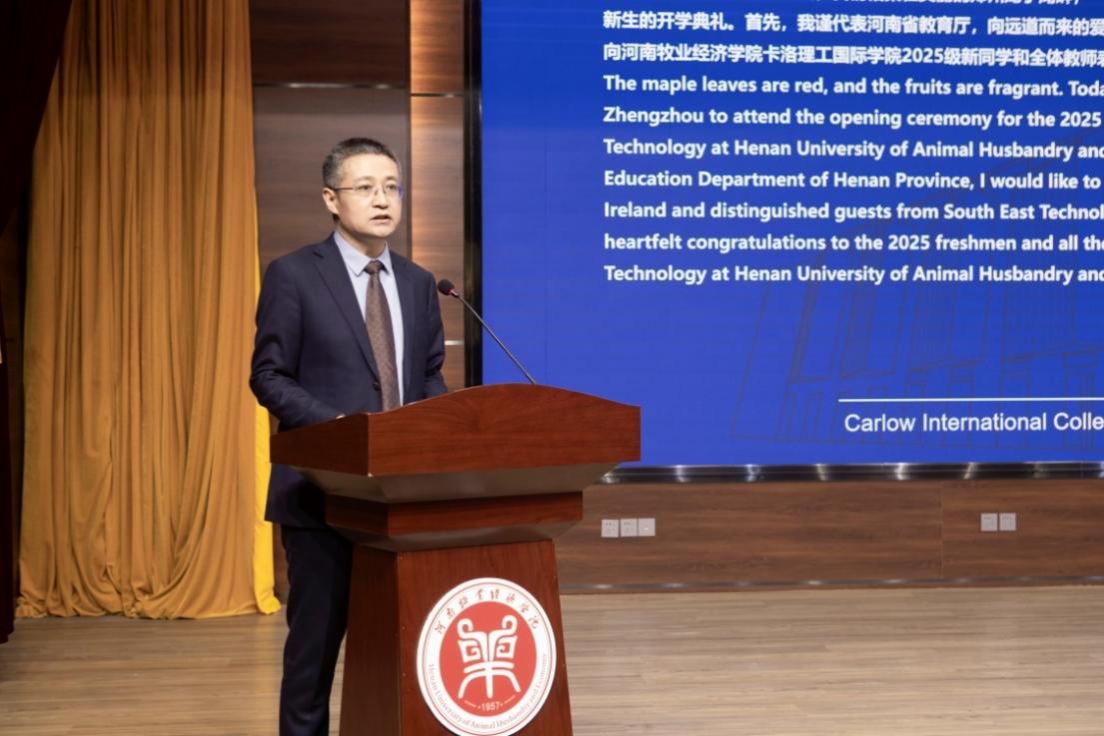 尹新明表示,作为河南省示范性应用型本科高校,学校自2021年与爱尔兰东南理工大学联合创办卡洛理工国际学院以来,始终坚守立德树人根本任务,构建了“一核五维”国际化人才培养体系,学生在各类高水平学科竞赛和创新创业大赛中屡获佳绩,充分印证了合作办学的高质量发展成效。她希望2025级新同学将个人理想融入国家发展之中,筑牢知识根基,锤炼专业技能,在学习实践中增长才干,努力成长为兼具家国情怀与国际视野的时代新人。