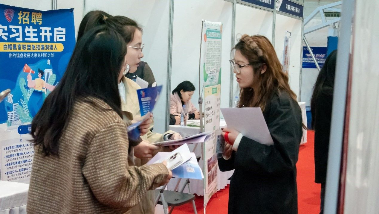 本次双选会创新采用“线下+线上”融合模式。线下会场气氛热烈,毕业生积极投递简历,与用人单位对接交流;线上“直播带岗”通过企业推介、岗位解析和互动答疑,打造“云端双选会”,累计观看超20000人次。本次双选会强化服务指导,现场设有就业咨询、简历诊断与政策解读服务台,提供“一对一”指导;“西部计划”“参军入伍”“考公咨询”等特色展位吸引大量学生咨询;“就业信息长廊”集中展示就业政策与招聘信息,助力毕业生充分就业。