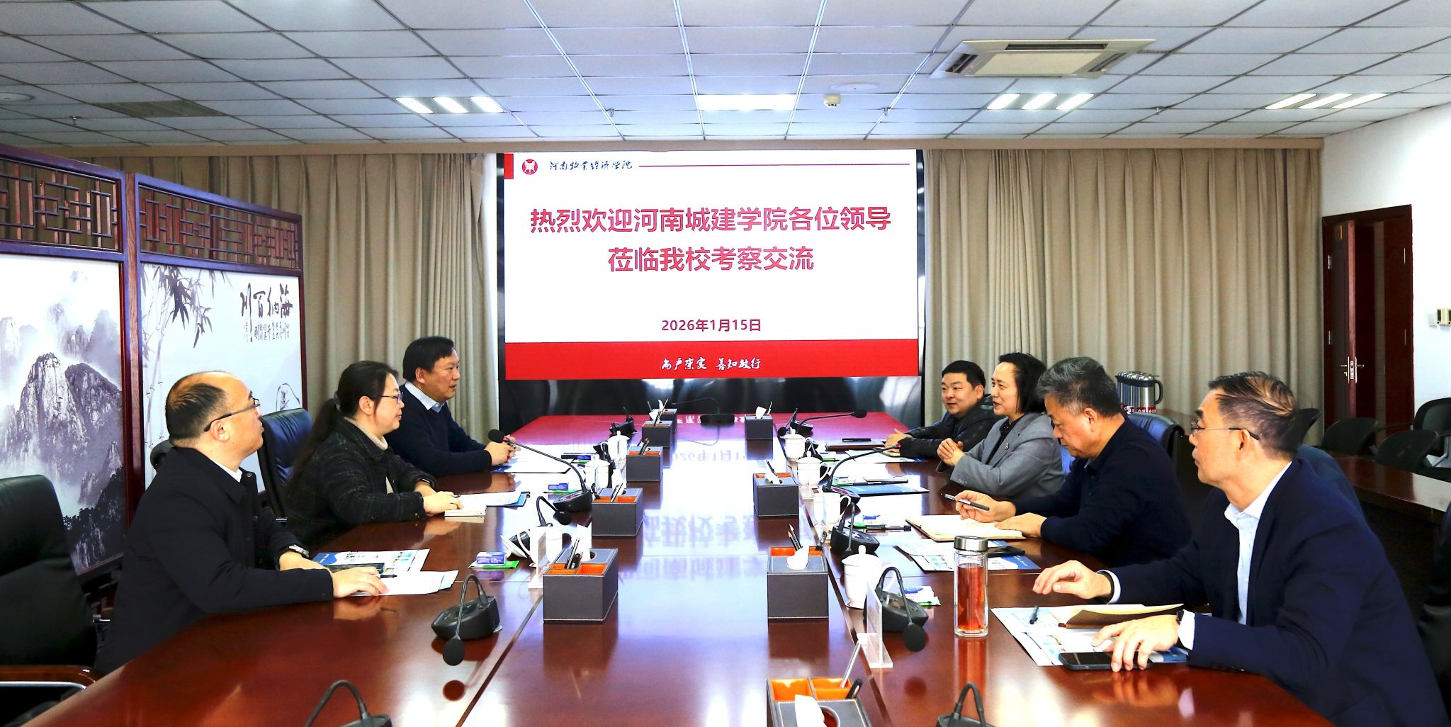 1月15日,河南城建学院校长陈桂香、副校长孙玉周一行到我校考察交流。我校校长尹新明、副校长席磊、纪委书记韩永刚出席座谈交流会。