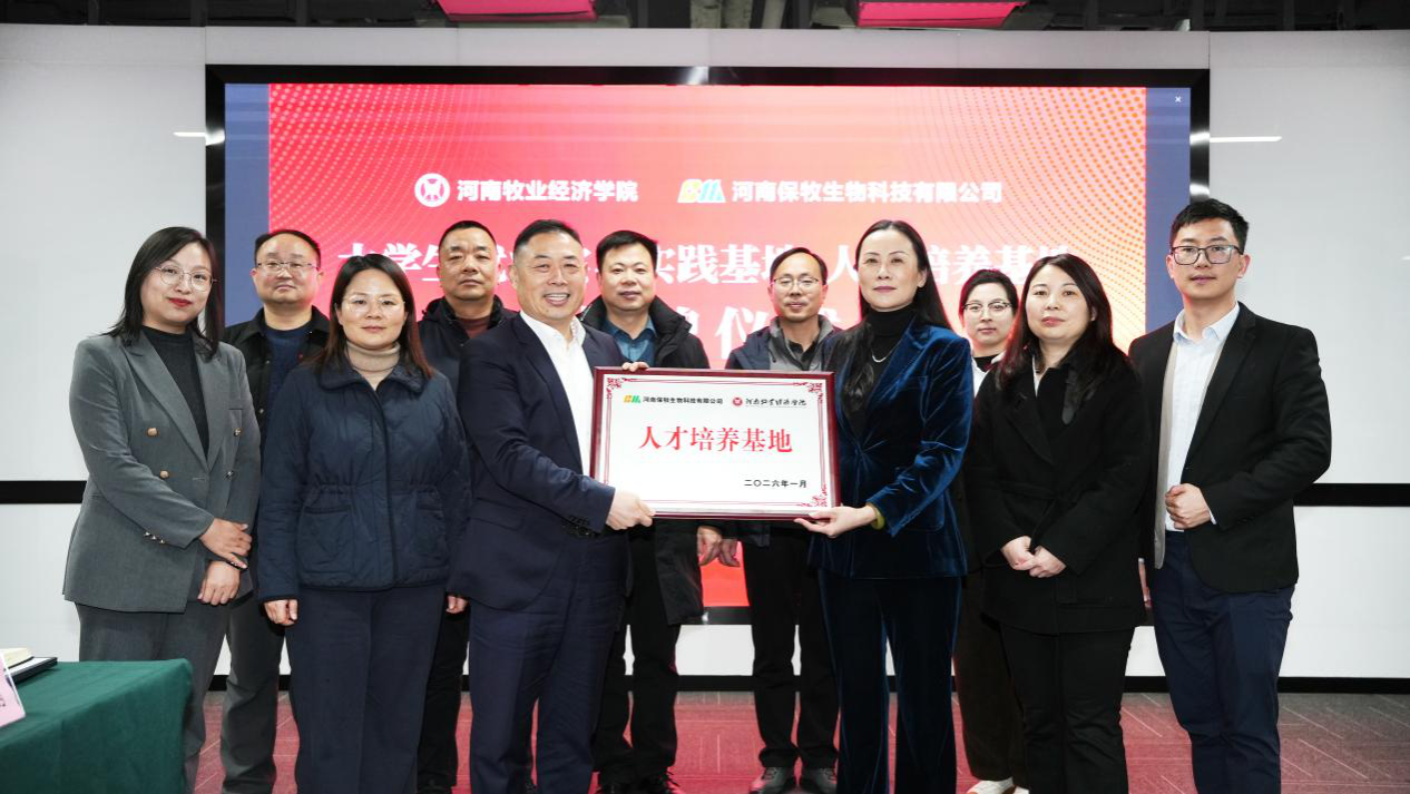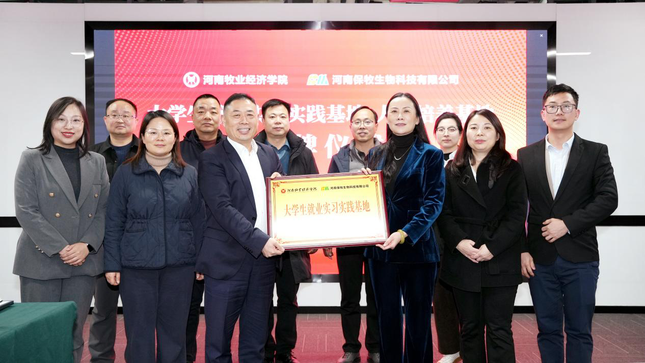 校企双方举行了校企合作授牌仪式。马珺代表学校向河南保牧生物科技有限公司授予“大学生就业实习实践基地”牌匾,张少征代表公司向学校授予“人才培养基地”牌匾,标志着双方合作迈入实质性推进阶段。与会人员还就联合人才培养方案制定、横向课题研究、学生就业实习保障等具体工作展开深入交流,达成多项共识。